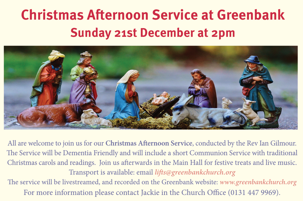 All are welcome to attend this dementia friendly service with traditional carols and readings, followed by festive treats and live music in the Main Hall afterwards. Please encourage anyone who might enjoy attending.